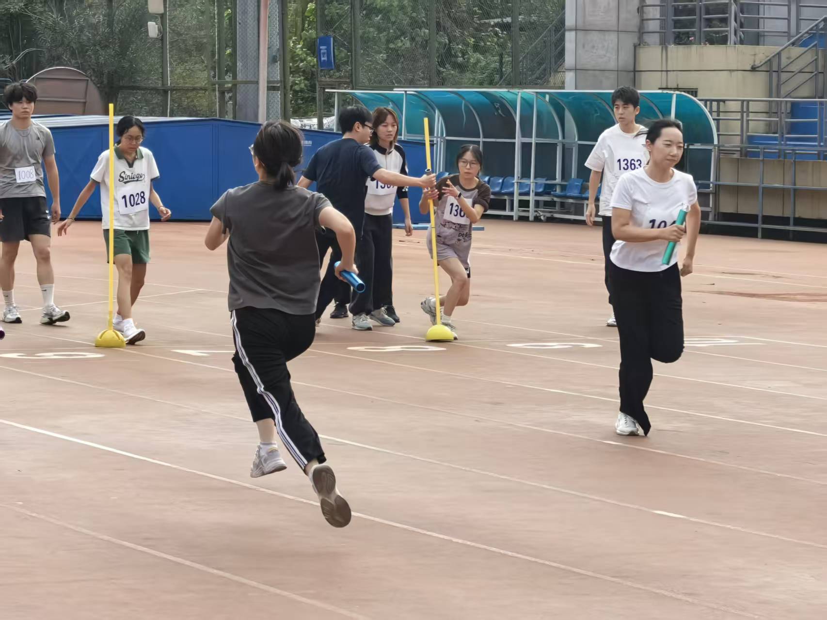 在团体项目中,学院健儿们将“协作”二字刻进赛场每一秒:接力棒在队员手中稳稳传递,从起跑、交棒到冲刺,默契配合让团队力量最大化,每一次交接都凝聚着共同的目标,他们用整齐的节奏与强劲的竞争力,展现出学院研究生团队的凝聚力与战斗力。