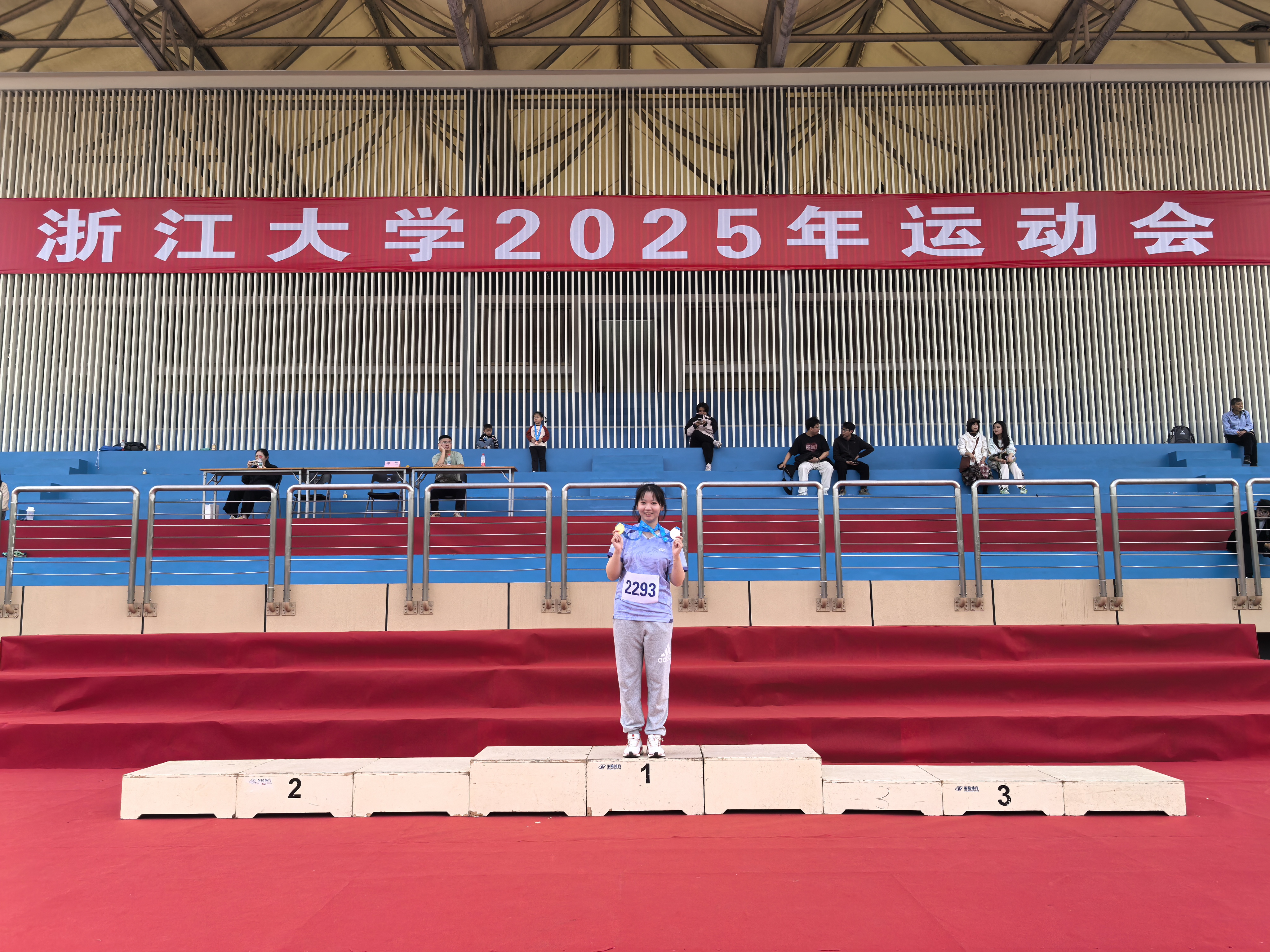 本次校运会中,学院2025级研究生马迅言同学成为赛场上最亮眼的“双料明星”——她凭借精准的投掷技巧与稳定的竞技状态,一举斩获研究生女子标枪金牌,更在研究生女子铁饼项目中突破自我,摘得银牌,用两枚奖牌为学院赢得荣誉,也成为团队当之无愧的实力担当。
